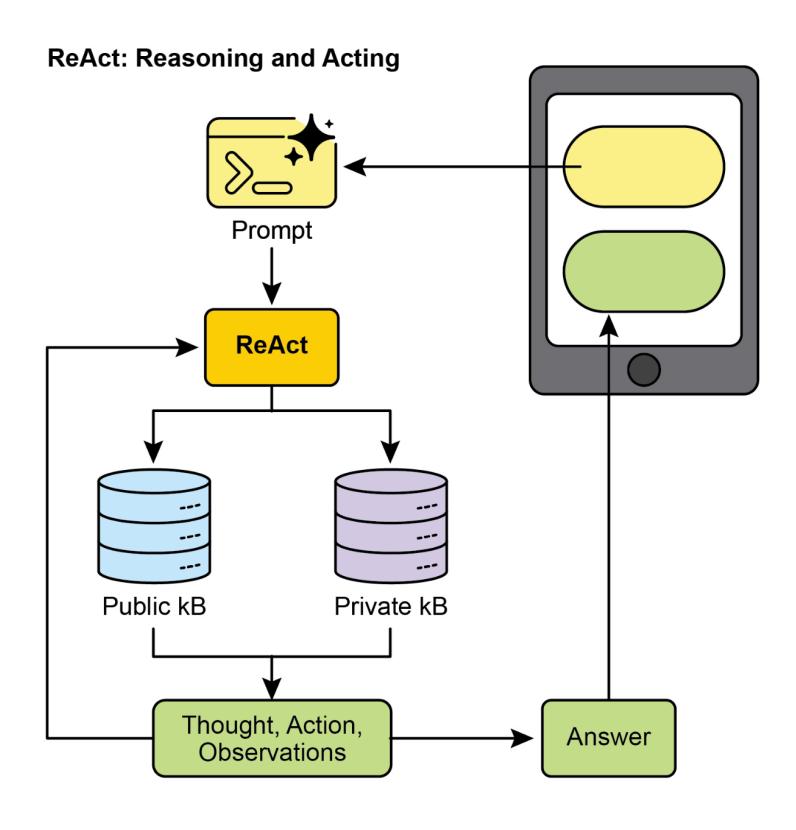 What is the “ReAct” (Reason and Act) framework mentioned in this context? ReAct is a popular framework that integrates reasoning and acting. The agent follows a loop of Thought (reasoning about what it needs to do), Action (deciding which tool to use and with what inputs), and Observation (seeing the result from the tool). This loop continues until it has gathered enough information to fulfill the user’s request.